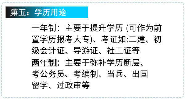 電大中專學(xué)歷的用途是比較廣泛的,但一年制和兩年制專業(yè)還是有較大區(qū)別的,所有沒有高中學(xué)歷,不想出現(xiàn)學(xué)歷斷層,以后有考公考編、當兵入伍、進國企打算的同學(xué)都建議大家選擇報考兩年制,實際上是必須報考兩年制。那為什么說建議呢?因為總是有同學(xué)不相信盛老師,說在某音、某書上看老師說報考一年制就行啊!話點到為止,信不信由你了!