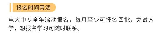 電大中專目前每天都可以報名注冊,每周出一批學籍,所以說從報名到入學都用不上一周的時間,是非常快捷的。