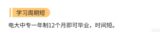 電大中專學習周期短,不需要幾年的時間,最快的一年即可畢業拿證。