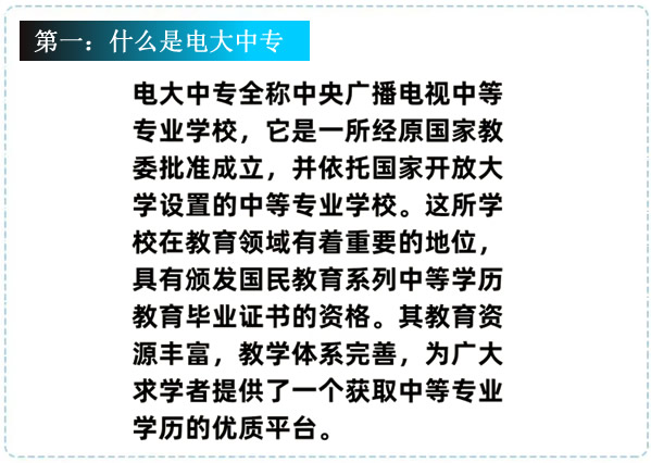 綜上所述,雖然只是一個小小的中專學歷,但在你迫切需要中專學歷的時候,在你了解了電大中專學校及其辦學北京、學習考試方式之后,我想90%以上的人都會選擇報考電大中專的學歷。